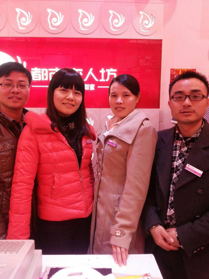 上午一直下大雨,但通过我们的督导帅哥带有磁性的声音,路上三三两两的行人还是被陆续吸引到我们都市恋人坊店内。