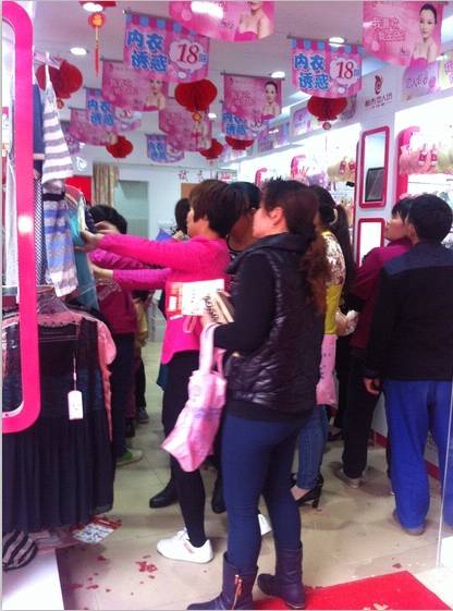 客户曾姐和老公杨先生以前是在福建的鞋厂做流水线的,一直有打算开家属于自己的小店,今年年初来到深圳观澜,和哥哥一起参谋考察当地市场,还是比较有信心的,因为曾大哥有自己现成的店铺,所以就考察品牌上比较细心。在网站上搜索内衣加盟店,看到了我们的开业和店铺活动促销的照片,于是在网上咨询招商专员,经过我们招商专员的详细讲解,很是心动,说做就做,然后直接支我们公司和直营店考察,第三天就签约确定合作了。来看看我们开业当天的场面吧!