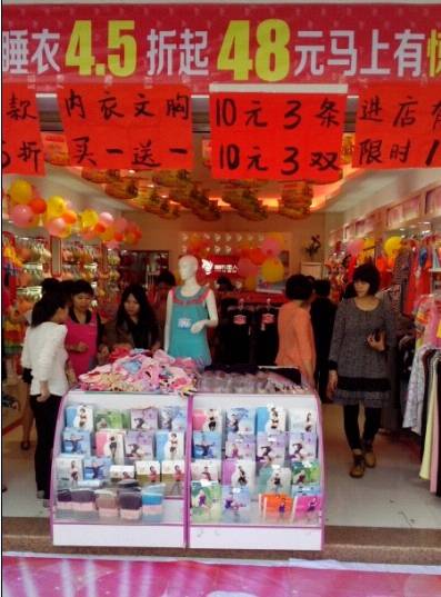 3月29日,真是个好日子,早上乌云密布,暴风雨的袭击,正所谓风调雨顺啊!但是这些外在因素不会打击我们的信心,把外场布置好,目标订下来,十一点之后,天气就好转了,雨后见彩虹啊!当天隔壁的都市丽人周年庆活动,拐角的女人心开业,我们的活动内容是:断码内衣买一送一,春夏新款五折后再会员折优惠!