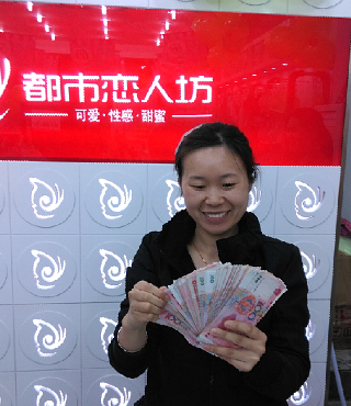 看看老板娘多么开心!