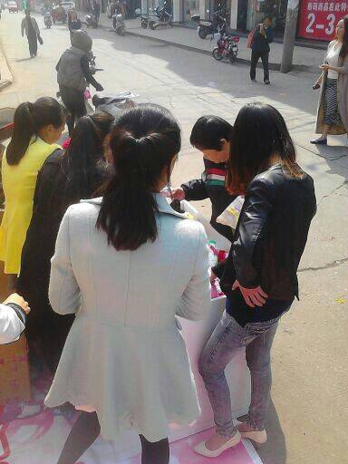醒目的海报还有丰富的礼品,列队等候我们的客人