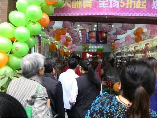 我们到店铺的时候还下着很大的雨,当时大家心里都非常担心这雨会下一整天,但到8点过8分的时候我们还是顶着雨,在一片喜庆的腰鼓队和爆竹声中我们红红火火的开业了!看一下我们的火爆场面吧!