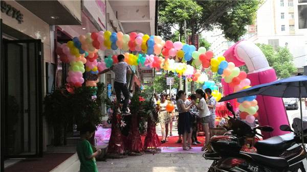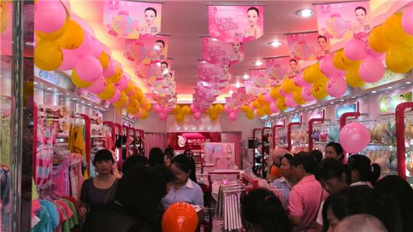 也许是得以改行做品牌的时候了。公司张经理来到我们店里,开始不懂这个品牌,是张经理三顾茅庐,三次到我店里,并且让公司的营销总监杜总亲自和我洽谈加盟事宜,我被他们的真诚所打动,从2012第一家到2014的第五家今天第5家开业了,早上七点半,我们开始打拱门,铺地胶、挂横幅、摆礼品、音响放起、督导的麦克风响起,开场舞跳起外面的顾客被我们的场面给吸引了,价美物廉、款式新颖、礼品多多。看看我们火爆的现场。
