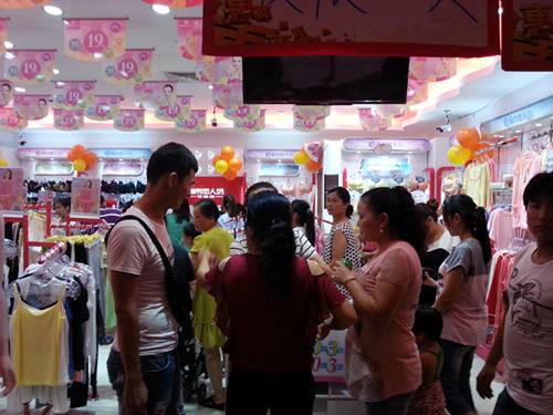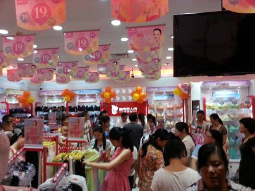 漂亮的陈列,各种各样的款式和督导的喊麦吸引了很多客户进店选购
