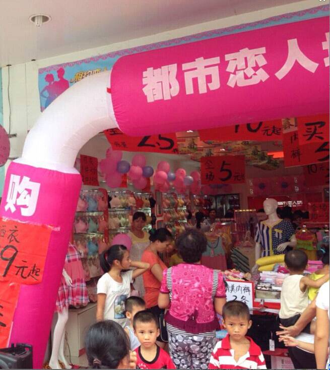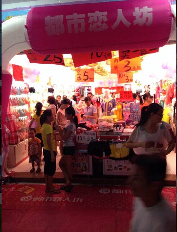 这是王老板的第三家店,这个月的公司扶持促销活动定于8月8日,一大早就开始有下起雨,到店里拱门、地胶一铺城管就来了,再怎么样都抵挡不了我们活动的激情,一切准备就绪,喊麦声响起,大街上来来往往的人都被我们的活动内容吸引进店,每个近店的顾客都面带微笑的有提我们都市恋人坊的袋子出来。在我们的店里她们得到了物美价廉、得到了物超所值。这个时节,每个店都在搞活动清夏款,竞争够激烈,我们有公司人员亲自下店做活动支持。旁边同行业的人在模仿但是超越不了哦!