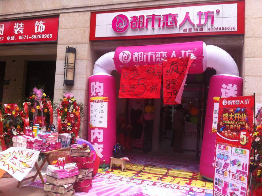 老板娘现在经营一家饰品店,早就想拥有一家属于自己的内衣店。这不,就在网上搜了起来,因为以前做饰品就经常来义乌小商品市场,所以,早就知道我们都市恋人坊,现在没想到我们竟发展的这么迅速。老板娘最看中的一点,就数我们价格实惠,又有公司强大的四维服务,让老板娘甚是放心。第二天就来到我们总部毫不犹豫的就把合同签了下来。前后不到一星期。就这样,老板娘的梦想实现了,她的店在8月30号这天喜庆开业。因为这是个小镇,又是新开发的。人流量极少。不免让老板娘有些担心。在怀着激动又紧张的心情中,我们都市恋人坊又一家新店开业啦。开业大酬宾,全场五折起,进店送豪礼啦。