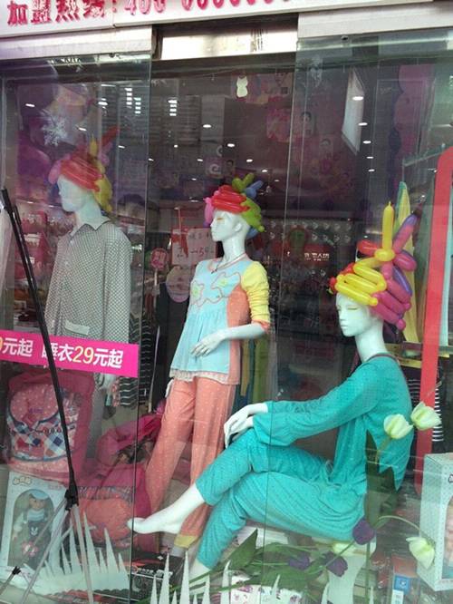 我们还帮模特扎了气球帽子,是不是很漂亮?