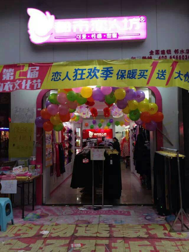 赖老板是位年轻有能干的小姑娘,经营都市恋人坊已经一年多了,把店经营的红红火火,生意一年比一年好。11月16号 早上下着雨,大家心里都有些担心,今天会不会还有人逛街。我们不放弃,我们要坚持、努力,没有什么做不到的,可能是我们坚持不懈的精神感动了老天爷!到了中午雨停了,让我们更加有信心啦,经过大家一起的努力到了晚上的业绩是7215, 看看我们(恋人狂欢季,保暖衣卖一送一) 的装扮现场吧!