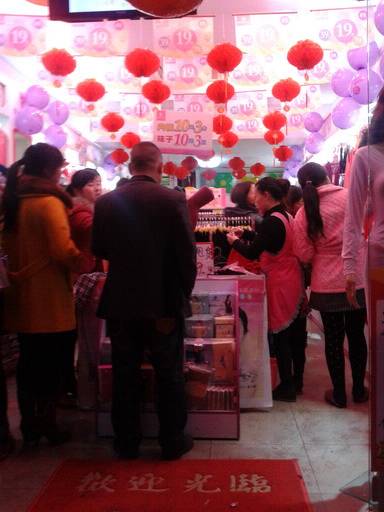 为了做周年庆我们与周姐,事先想了很多,也做了很多的准备工作,也以参考大量同事们成熟地经验。换积分,买一送一,送礼品,统统用上了。布置了大气的外场。周姐更是提前准备了大量礼品以及大量货品。