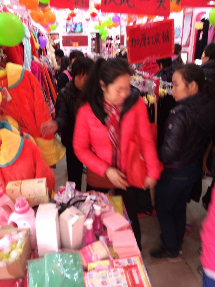 活动当天,天气很给力。我们的活动内容以保暖夹棉美体打底初裤袜为主,1店、2店活动同一天火爆进行,由于当地城管特别严,我们摆在店内的音响和礼品都给撤走了。但是我们还有“小蜜蜂”喊麦,虽然要辛苦很多,但是也抵挡不住我们的激情,抓客单价,抓成交率。