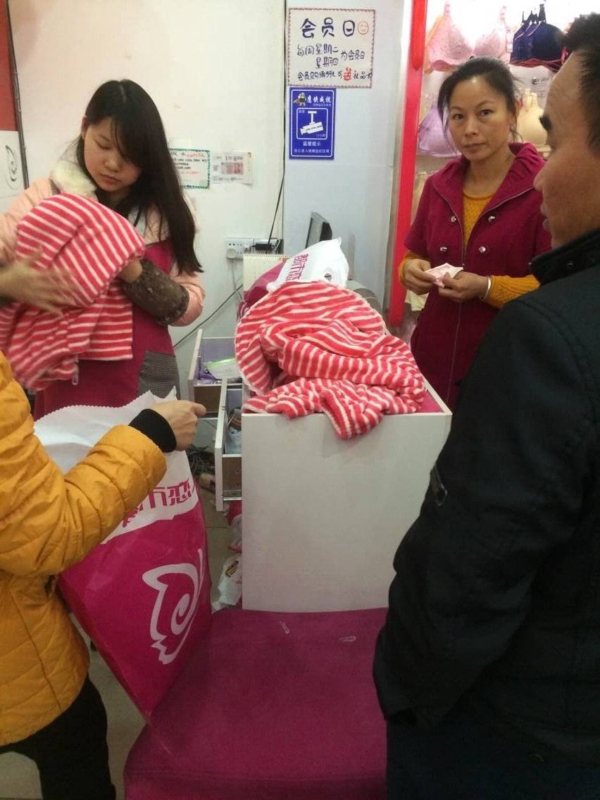 今天是2014年12月6号,前几天就听说有公司督导下店做活动,可把我们兴奋了好一阵子,活动前天督导早早到店帮我们布置场地,确定好活动内容,有买一送一 抽红包得大奖之类的都比较新颖比较吸引顾客,第二天9点钟就开门营业,红地毯气球礼品保暖衣什么的都摆到了门口,督导穿起我们的保暖衣喊起保暖衣买一送一,很有活动的气氛就立即吸引了很多路人过来看,但是天公不作美的是下午的时候绵绵不断下起了小雨,街上的行人慢慢变少,那这样我们怎么办呢,那我们只能磨单连带销售,督导更加卖力地喊麦想在下大雨前把路人吸引进店,同事们也在有空的时候出去派单,到下午6点的时候总业绩达到了5000多点,晚上督导又换了套新装---法兰绒睡衣,终于在下班的时候业绩到达8084元,这个业绩还是还可以的,距离上次活动时间5天,以后再接再厉业绩往上冲冲冲,同时感谢公司给予大力支持,最后感谢我们的督导林春喜美女你辛苦了