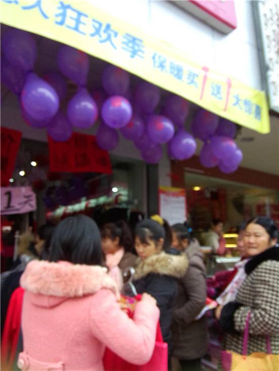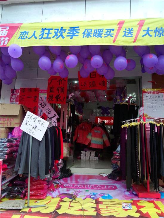 一大早不顾严寒忙碌的从家搬运保暖货品到店陈列布置外场。活动主题一张贴“大回馈,送温暖,保暖衣买一送一”此时来来往往的人渐渐地也多起来,张姐帮忙的朋友也已到店,我们的活动正式上演........