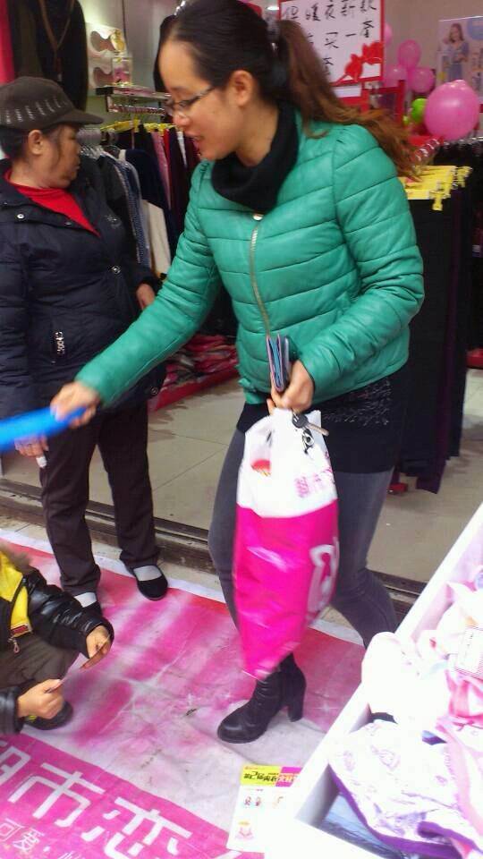 店面后边是菜市场,现在不是花市季节,虽然人流较少,但不减我们对活动的信心。 当天借着一股冷空气来临,我们的暖衣和裤袜是热销的,刘洁跟他老公努力让进店的顾客购买,并提高客单价。 刘洁人很随和,这让她有不少老顾客,她一个人看店还一边带小孩, 晚睡早起的挺辛苦的,之前是做散货的,进来的顾客都爱讲价,这让她比较烦,她通过朋友介绍加入了我们都市恋人坊的家庭,督导的四围服务让她更有信心。她老公看着她那么辛苦,打算明年辞了工作,准备一起找店面开2店计划!