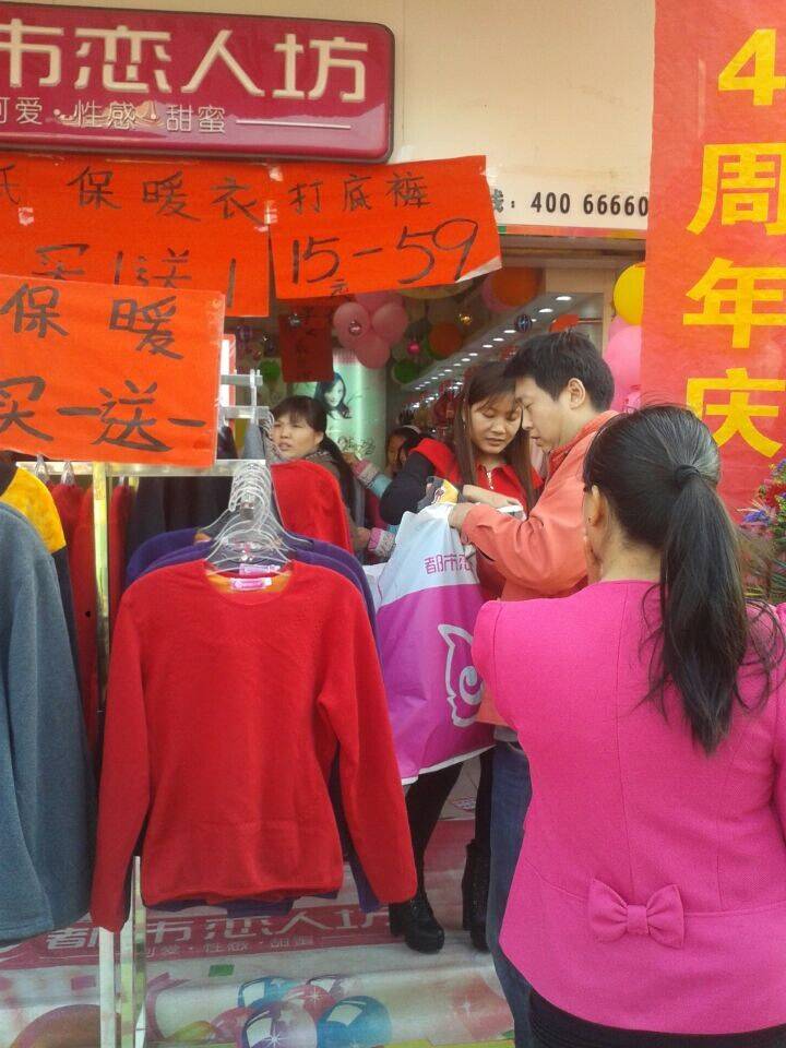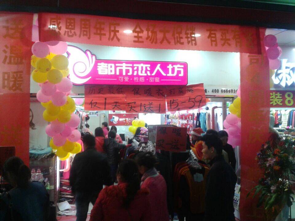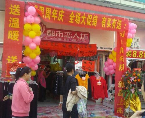 今天是个好日子!今天是个好日子!今天迎来了张老板2店1周年活动,张老板已经是开了2家都市恋人坊,所谓夫妻拍档,干活不累,每个人管理一家店面,老板就是看中公司飞跃的发展前景,优质的产品,公司的四维服务。把这两个店管理得井井有条,提前的策划,提前的备货,一切东西准备就绪,活动当天我们早早就把场面布置好了,我们今天的主题是感恩周年庆回馈,全场商品折上折的大优惠,更多好礼送不停。下面来看看我们的活动现场。