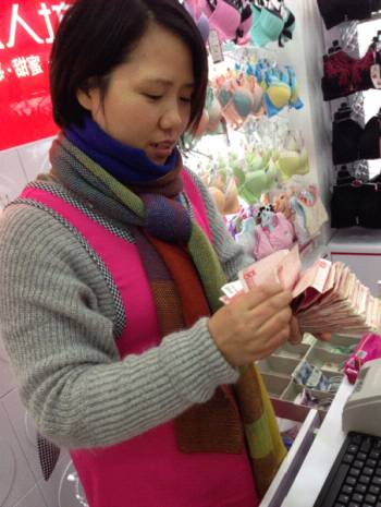 收钱,找钱忙得不亦乐乎。你看看这个热闹的场面。