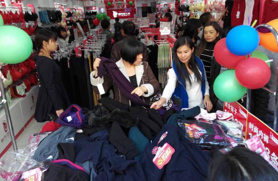 2015年新的一年,新的一天,心中有目标,就一定能实现!元旦节大街小巷的店铺都抓紧这个黄金销售日,大促大销,增添店里人气,提高业绩。我们都市恋人坊更是注重加盟商店铺的气氛布置和活动安排。早早的店内的气氛很快就布置好了,友姐和店员们做事的效率是值得肯定的,加上公司督导激情的喊麦节奏,整天店里的客流量是源源不断,维持了一天的客满现场,店内的货品陈列满满的,备货也足,自然而然能做出好的业绩。负责销售的2位店员妹妹也是忙得不可开交,一单接一单的成交量,这就是做高业绩的节奏。