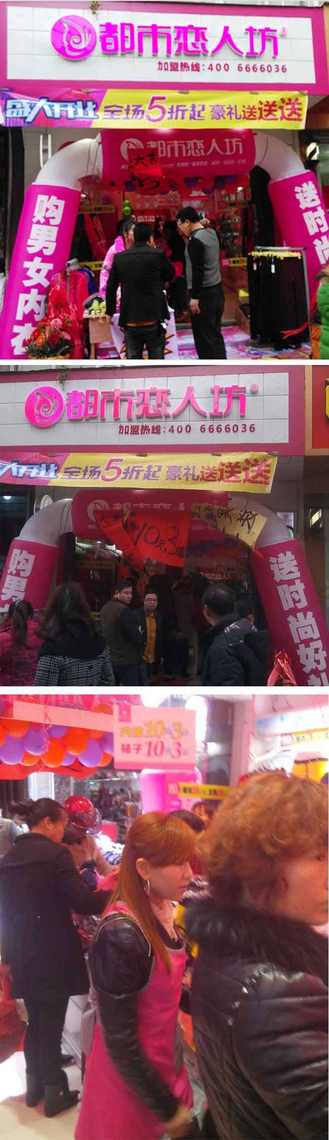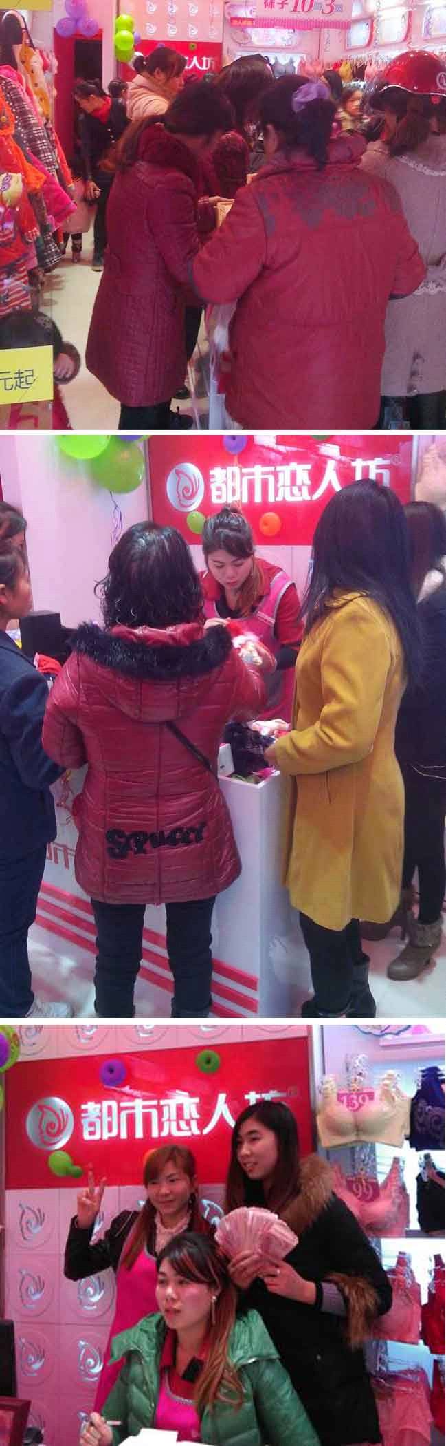 话说有好的市场就赶紧下手!现在已经是年末了,在很多人看来开得晚了。其实一点都不晚。我们叶总说:江田可是个好地方,我肯定要赶紧开,不然别人来开了!现在正即将过年了,很多外地人返乡,买东西都是大袋小袋买回家!叶总自己也是十几年的生意人,自己有办工厂,自从老板娘参加公司招商会后对公司特别满意,价位也特别适合大众群体消费,所以叶总对老板娘开内衣店也很支持的。于是紧锣密鼓找店面,加急着装修,终于迎来了开张的好日子!