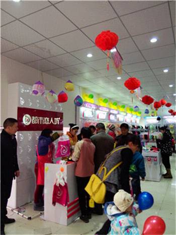 12.20号在李哥1店开业时朋友王哥现场考察的情况,当天决定也要加盟我们都市恋人坊,2015.1.17号店铺王哥店就盛大开业了。店铺2店位于永州珠山镇,一楼是王哥开了多年的综合超市,我们的店铺是在超市的2楼。