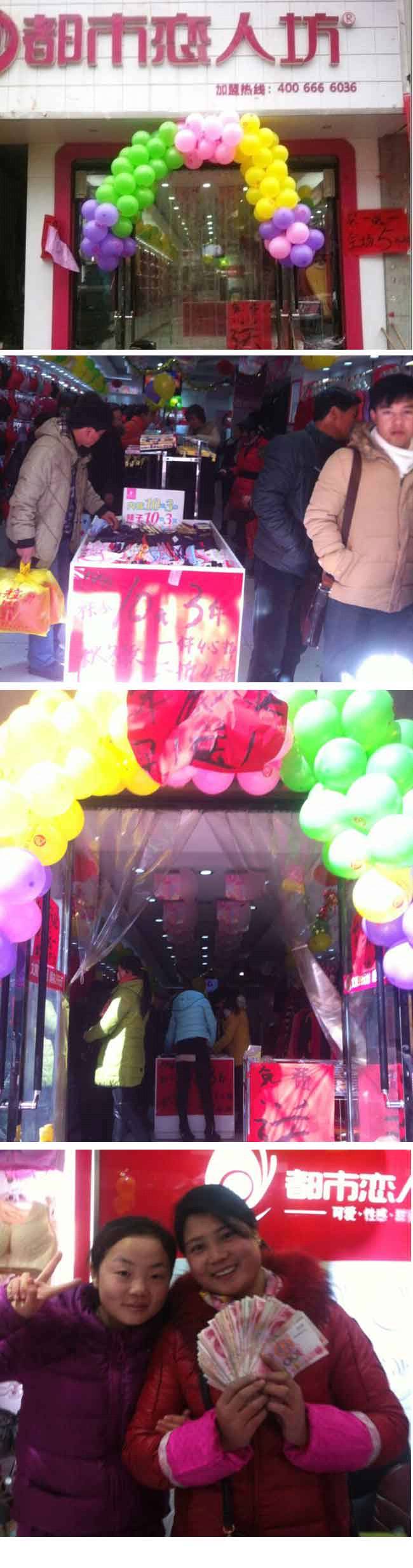 俞姐是位江西人,跟爱人在几年前来到甘肃一直在做散货生意,性格随和,乐观,待人真诚。随着市场的需求和消费者观念的转变,俞姐也开始转变思路到专卖店发展。一个偶然的机会加盟了咱们都市恋人坊。公司的四维服务也使俞姐在管理上有了更大的突破,对员工的管理非常到位,而员工也是非常给力,店铺成交率一般都比较高,积极性也高。虽然县城的城管非常严格,我们布置不了隆重的外场,但是我们的内场和我们的店员还是非常的给力的哦,看看我们活动当天的气氛吧。