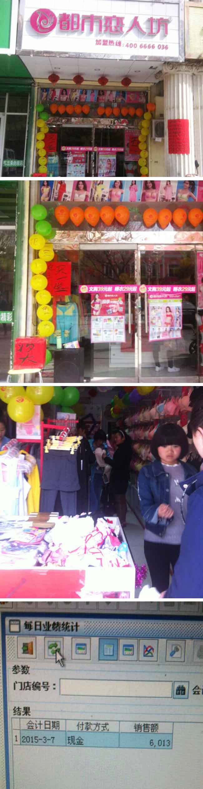 丁姐之前一直做散货内衣,一个偶尔的机会通过业务员了解到咱们的品牌,经过多方考察,决定转型做专卖。生意也是慢慢不错,这个周末我们同样的开始了咱们的周末促销,可惜当地城管比较严格,我们布置不了活跃的外场,只能靠活动方案来吸引客户。