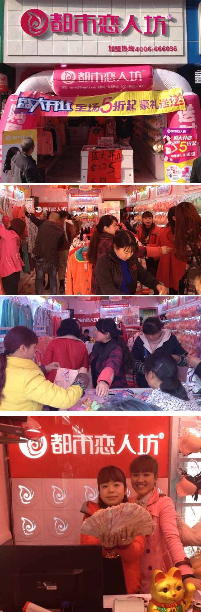 王老板的店位于遵义县政府驻地南白镇商贸城 王老板是去年6月加入都市恋人坊大家庭的,眼下一店经营得是有声有色,于是就筹备了开二店的计划, 3.12是个喜庆的好日子,就在今天王老板的2店盛大开业了,下面我们就来一睹当天风采吧~~~