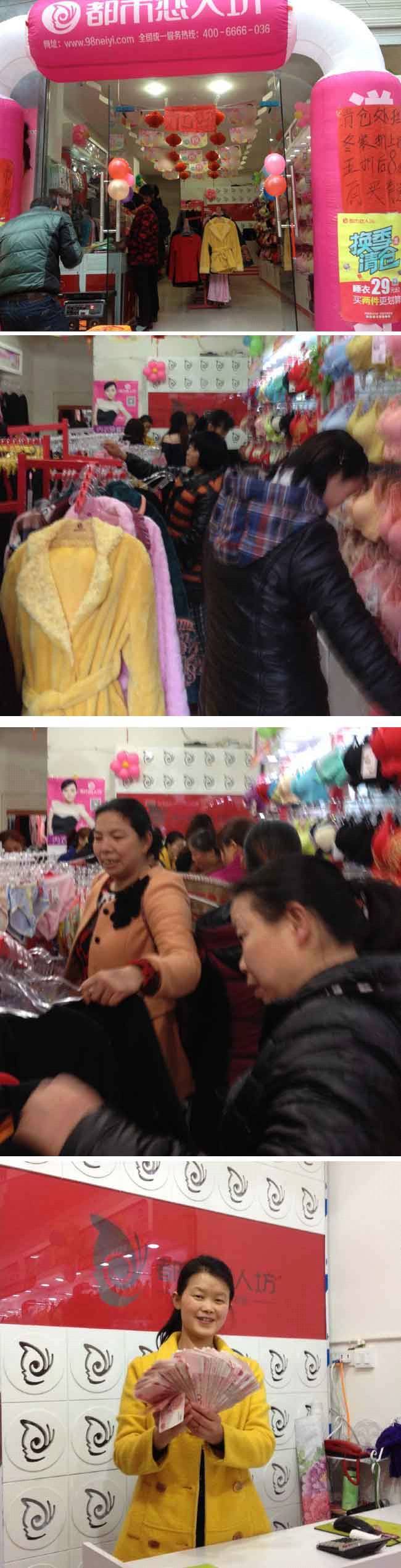 老板张姐在玉山是做管理的,,在一次偶然的机会中,通过我们的业务员了解到都市恋人坊,经过考察了解,觉得价格、款式、装修风格都适合当地的一个大众消费,更加吸引的是管理模式、服务模式都适合她的经营理念。相信跟着一家飞速发展的公司一定有奔头,已经开了半年的张姐生意越来越好,就在这次的活动当中,我们当天的业绩达到了8012,下面来看看我们活爆的场面吧!