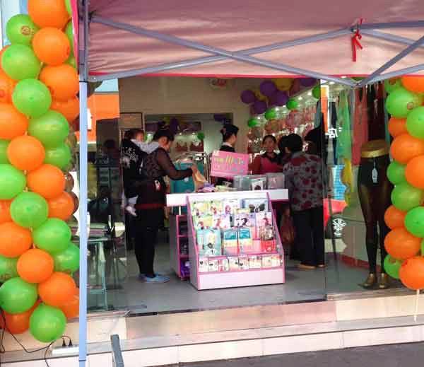在不是周末不是节假日的时间里,我们活动照样做,活动当天,早上才开门,当我们还在布置外场的时候,过路的人就一个紧接一个往店里面走了