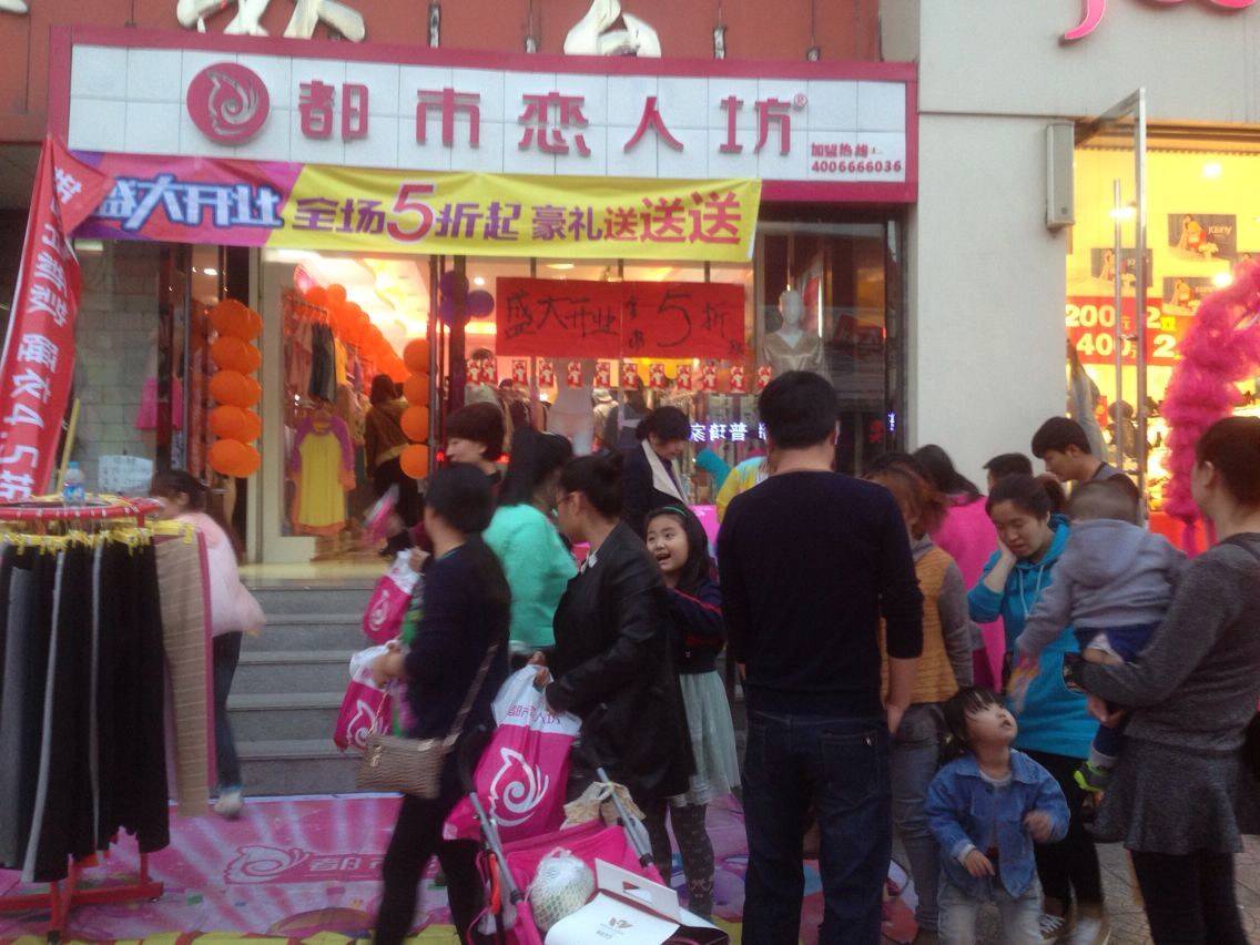 李姐之前经营的是散货生意,通过我们的招商会签约了都市恋人坊,1店开业生意一直不错,经过半年的时间结束了散货店的生意后并加开了我们的2店,2店地理位置比1店要好,每个客户的平均成交件数都在3件以上,你姐对2店抱有更大的希望,通过2店开业后李姐更加认可我们的“四维服务”以及公司的种种方面,下面我们先看看李姐2店开业的场景吧: