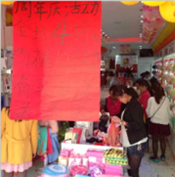 曹姐是2012年加入都市恋人坊这个大家庭的。到目前已开了3家店,都在六盘水, 4月4日,正是曹姐2店开业一周年,早早的就和曹姐商量做周年庆了,曹姐是个很积极向上的人,曾多次参加过公司的培训,做什么事情都很积极。4月3日晚上,我们很快的布置了内场,第二天一早,阳光明媚,显得人的心情也很美丽,早早的把外场布置好,伴随着督导的喊麦声,活动就开始了,人员一个接一个往店里面走了,一天都没有断过,一直忙到晚上,业绩10651,破万破万!一个个的都开心了,第二天、三天我们又继续做曹姐4店和1店活动,业绩也很乐观,分别是4502、6132元,三天总共21285元,我们都笑了。下面看来看看我们的店面火爆情况吧!