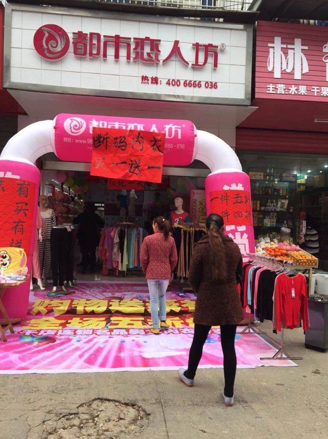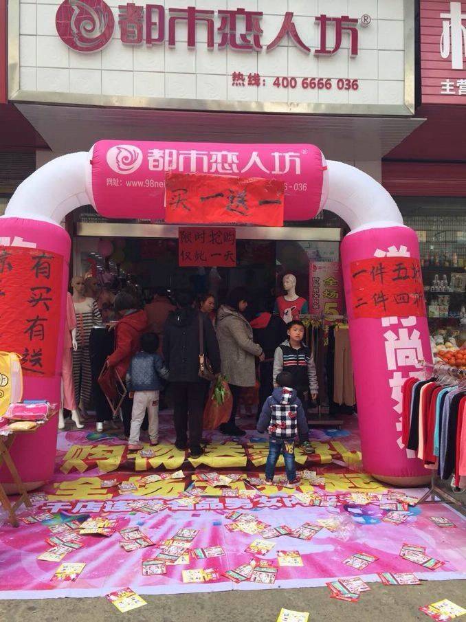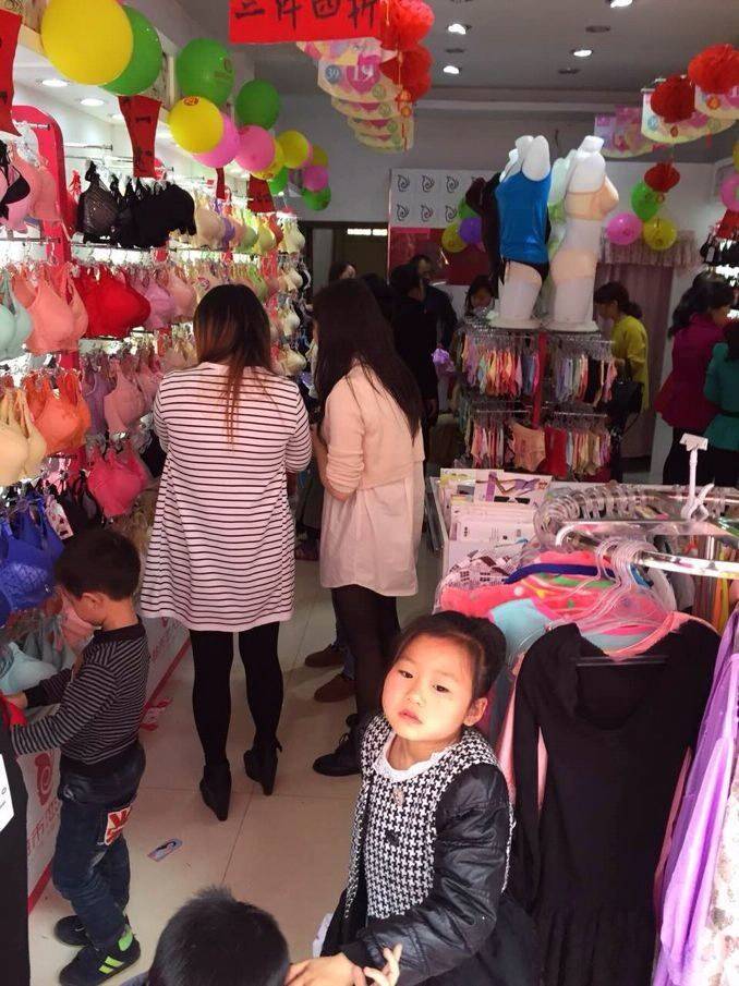 赵姐的店位于浏阳市永安镇一个市场内,市场里内衣竞争非常大,从散货到品牌有七八家,但赵姐相信我们的品牌,也非常喜欢公司的四维服务,活动当天,刚好是周末人流量大,外场是赵姐亲手布置的,看看这外场这布置