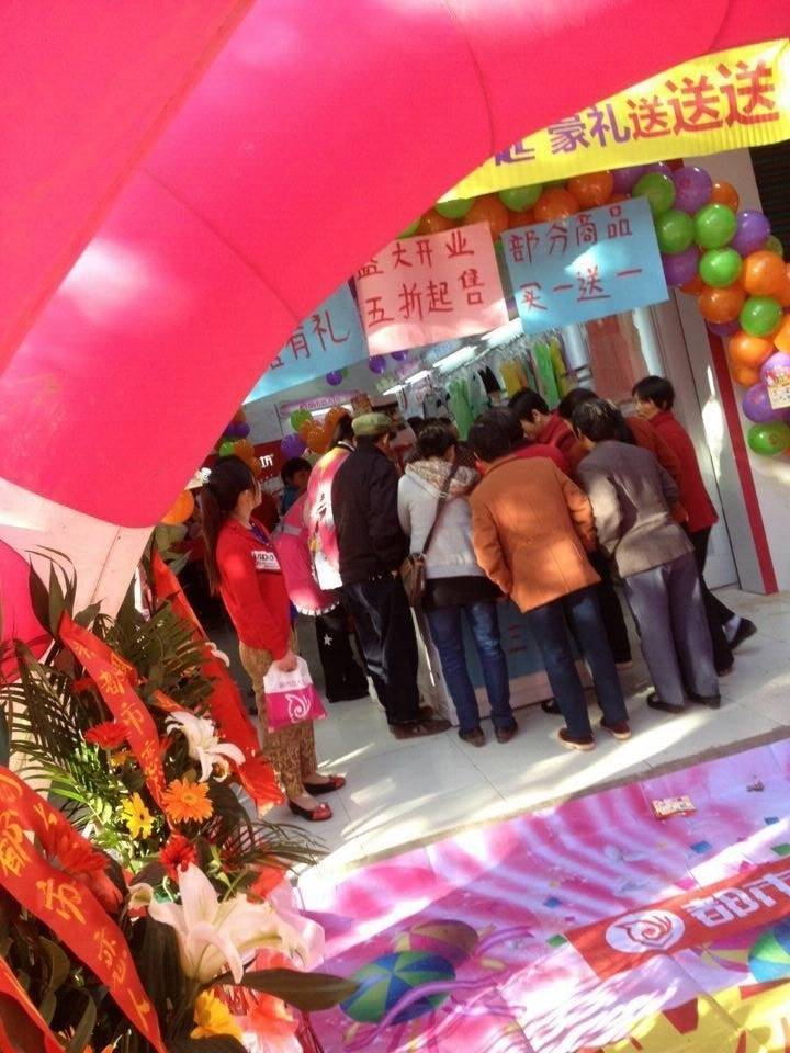 周姐是在去年的10月份加入我们都市恋人坊的,已经把店面生意经营得有声有色,已经签了3家店的周姐,在时隔个半年的时间里,找好店面,在2015.4月份又开了2店,在4月13日这天我们迎来了她的2店开业,我们早早的到了店里,把外场布置好了就开始了今天的开业活动,这条街的人流量早上不是特别大,但是我们一直在喊麦,和店内热烈的氛围以及漂亮的货品吸引了不少的客人,一直到晚上营业结束,开业业绩达到10574元,我们都非常的高兴,我们也祝愿周姐,生意兴隆,早日把3店,4店,5店开上。下面我们就来看看我们漂亮的店面和热闹的场面吧!!!