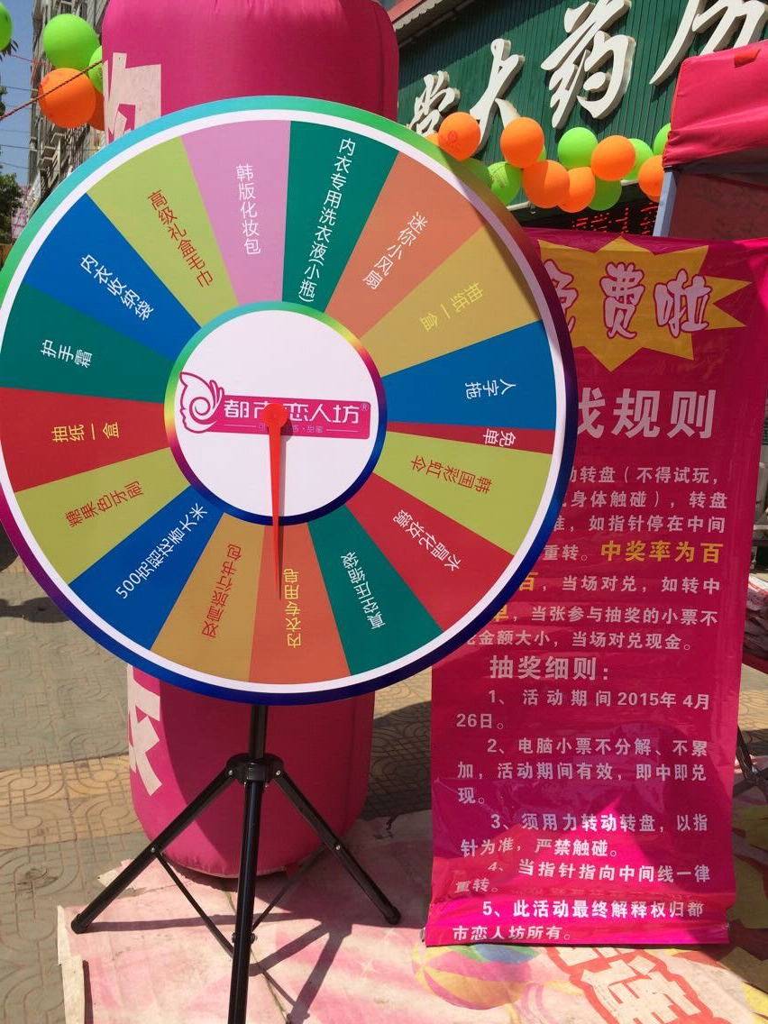 随着我们劲爆的音乐和督导的喊麦声,连空气里都充满了无限的激情。客户都被我们热情带动,纷纷进店选购自己心爱的商品。幸运大转盘,越转越幸运!越来越多的人被我们的免单转盘吸引过来,场面那叫一个火爆。