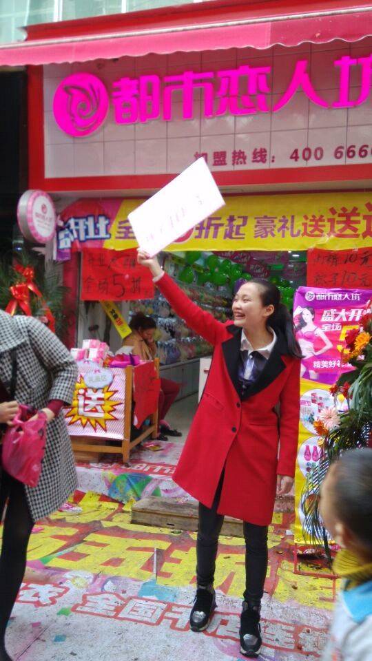 尹老板之前是做其他品牌内衣的,在邻居的介绍下了解了我们都市恋人坊,跟她之前做的品牌比起来觉得我们的质量更好而且又实惠,更加方便管理和经营,后期还有四维服务,在跟家人商量后果断的改做起了我们都市恋人坊,2015年4月24日不是什么特殊的日子,天气也不是很好,一大早就下起了大雨,但也没有阻挡我们大干一场的激情。中午12点时,一看业绩已经四千多了,老板娘高兴极了,还说她以前再怎么做活动都没超过三千过。我说今天我们的最低目标是过万,大家加油!大家都说好。虽然没有专业的营业员,在老板家亲戚的帮助下,我们一天的目标达到了,一天下来业绩10465,来看看我们的成果吧