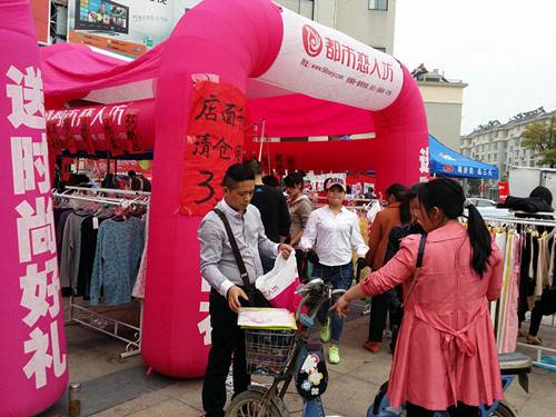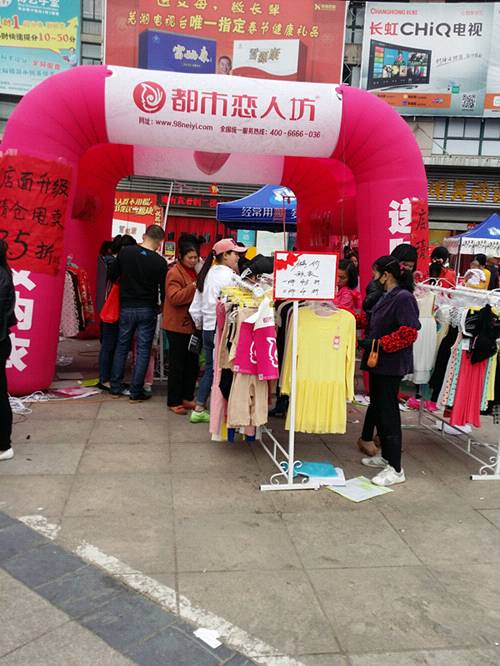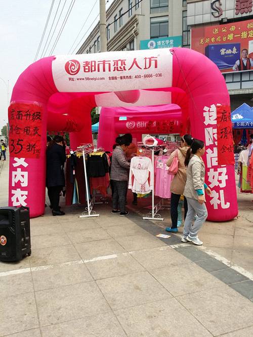 沈姐从2012年12月25日开了咱们都市恋人坊第一家内衣店到现在为止已经开了三家分店了,一直都信心满满,这次沈姐的1店想扩大店面,这不督导又来做活动了。4月18号一大早我们李大哥和沈姐还有我们可爱的店员就开始把店里的产品往外面搬(因为1店是在商场,管理受限制,所以我们决定做外场),下面来看看我们的活动现场吧!