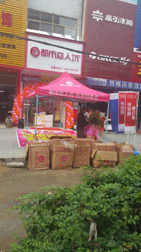 都市恋人坊这个品牌你造吗?如果你不知道,那您真的恶补一下时尚潮流的内衣品牌了,我们公司遍布全国各地大大小小无数城市乡镇,本品牌走的是低价位高质量的路线,已经引来很多店家自己开多店,朋友介绍开店的盛大趋势了,首先我们来看看我们简单鲜亮的门口设计吧!