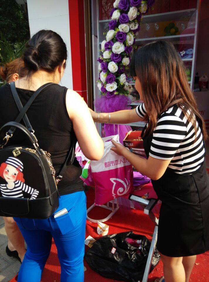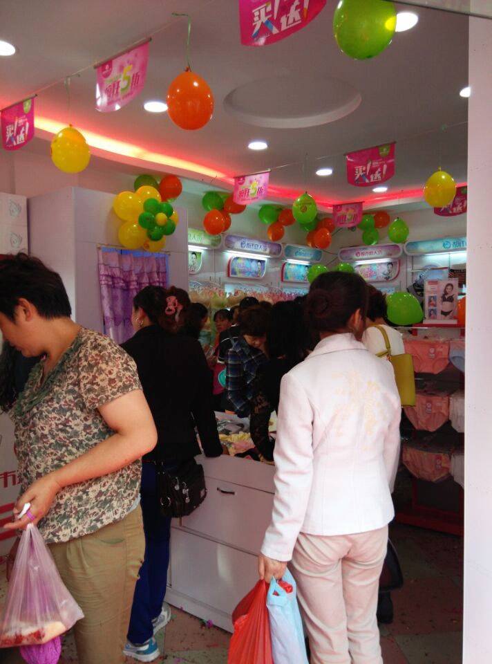 由于当天不是赶集天,城管较严,礼品架只能放在气拱门后面,音乐声、喊卖声都不能太大,不过依然阻当不了我们新老顾客进店抢购的热情