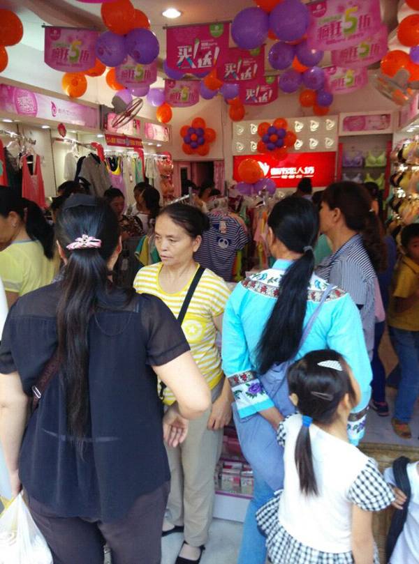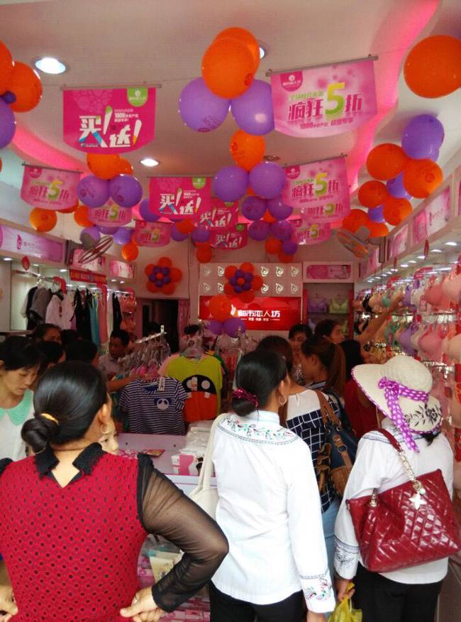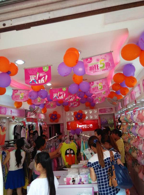 册亨是一个“山水册页,幸福亨通”的地方,是全国布依族人口占总人口比例最高的一个县,布依文化浓郁,自然风光迷人。都市恋人坊就坐落于册亨县云鹤商场内,明老板自已经商多年,在2013年接触到都市恋人坊,并到广西参加了新品财富会,当场签定合同,回来开始装修店面,并于2013年8月开业。快两年过去了,我们都市恋人坊在当地有了一定的名气,2015年5月24号我们决定来个新品到店、周末大惠购活动,大家早早的来到店面布置外场,下面来看看我们当天火爆的场面吧