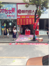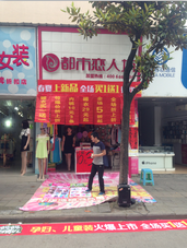 很多店里没有地方拉竖条幅,所以特意做了这种1米长的短竖幅,效果非常好,吸引顾客进店率180%以上。看看我们的活动现场吧,店员激情喊麦
