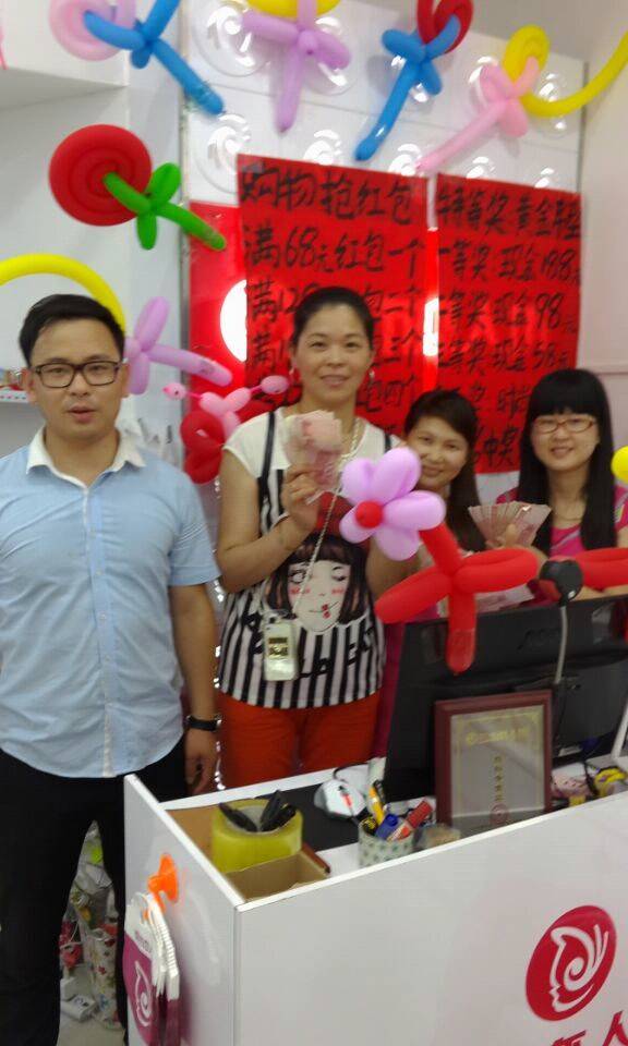 夏日炎炎,热浪滚滚,天气炎热让街上的行人少了很多,但是我们的活动依然继续,幸运大抽奖,百分百中奖,这是今天我们活动的主题,随着音乐的响起,热情的喊麦,路上的行人都被吸引过来,顾客挑选自己心仪的产品,更开心的是都想中个大奖,要知道我们的最高奖可是黄金吊坠,来看看我的现场图吧~~