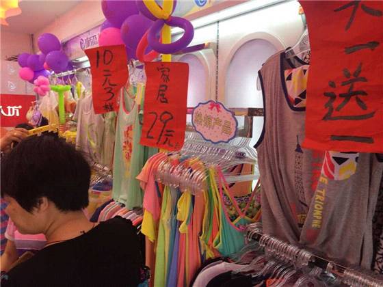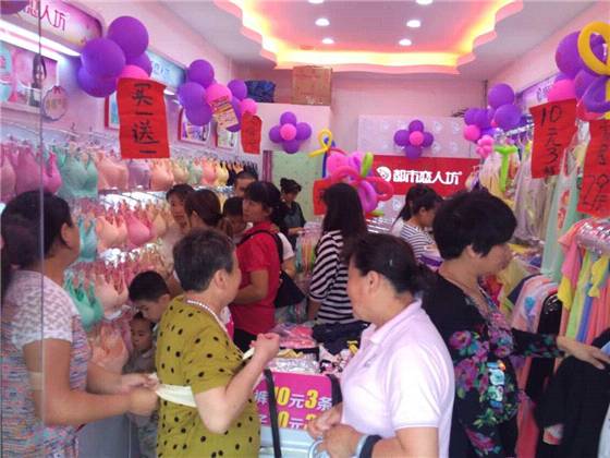 随着督导的激情喊麦,客人源源不断的进店挑选试穿,瞧这个阿姨,在外面就试穿上了。