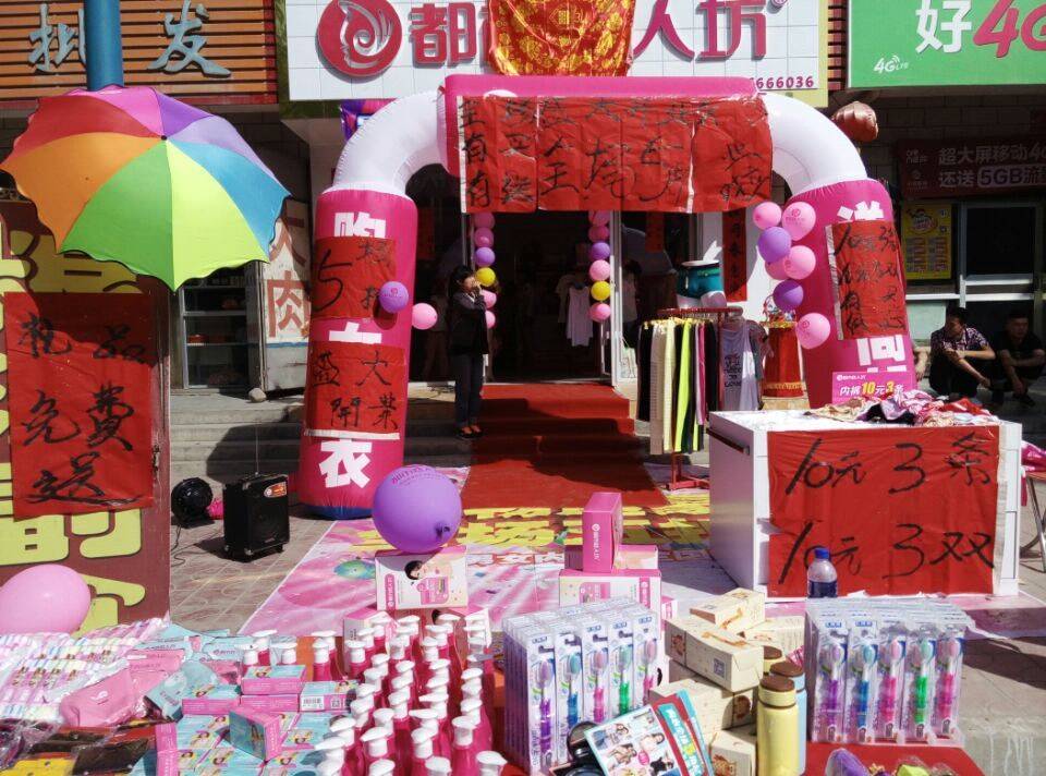 2015年7.13号是金姐开业的好日子也是我们创造奇迹的一天,天气酷热挡不住我们开业的激情,早上我们早早的来到店里开始忙绿起来,地胶,拱门,红地毯,大大的红字,开业准备就绪,太阳公公也被我们的激情所感染,大早上就出来凑热闹,炙烤着大地,赶集的人很少,随着鞭炮声的响起,动感的音乐及督导响亮的喊麦,从西面来的人群顿时挤满了小店,下面看一下我们的火爆场面吧!