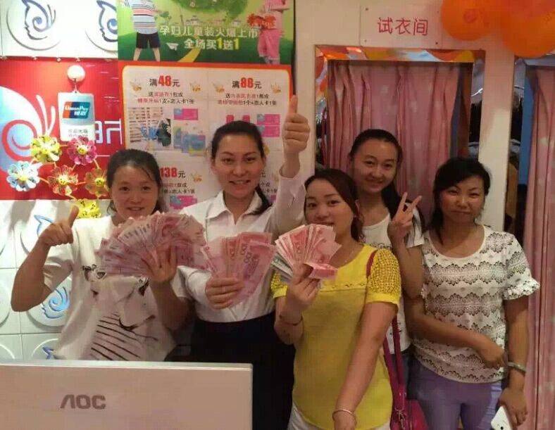 今天活动主题:扫微信全场免单5元,砸金蛋好运现在红包。看看我们的热情带动了走过路过的每一位顾客进店来扫货,人气爆棚哇!!!