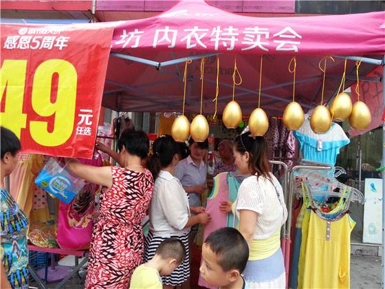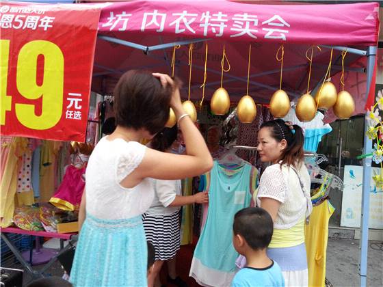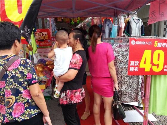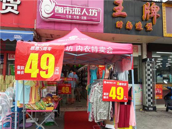 都市恋人坊感恩5周年,全场睡衣49,一律酬宾价49。王姐是都市恋人坊的老加盟商了,从公司成立到今年,加盟都市恋人坊5年啦!赶着公司零利润酬宾所有的客户跟顾客,王姐也赶着热潮做起来了活动,尽管店铺不大,但是生意红似火。