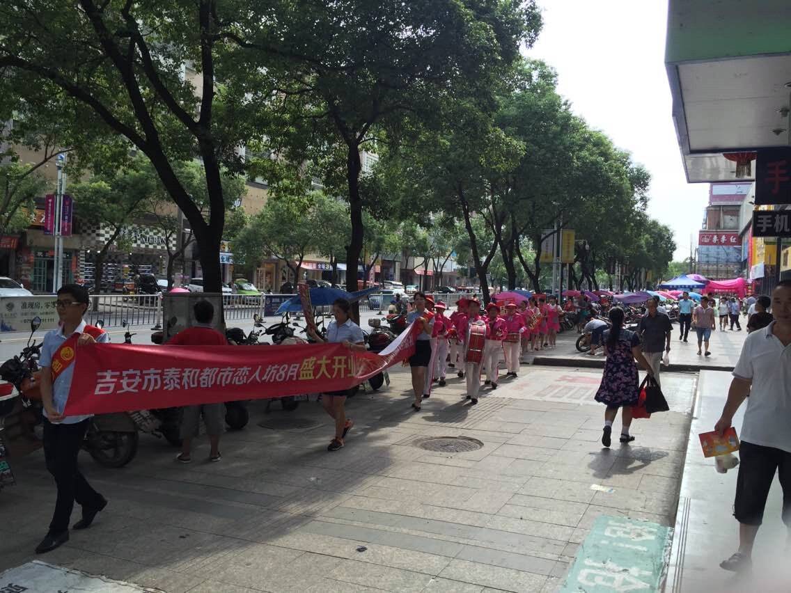 咚咚锵、咚咚锵……,十点左右,游街队伍出发了,如果你还记得去年的“解放南昌”大型开业活动,那这次应该叫”征服泰和”才对,随着游街队伍的大街小巷宣传,整个泰和县的目光都聚焦着我们都市恋人坊的开业庆典。