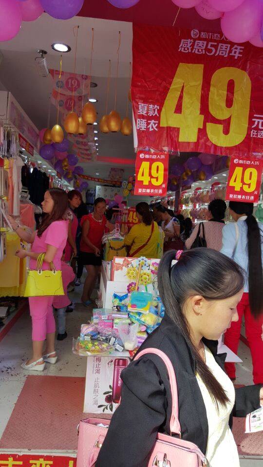 贵州六盘水,外界统称世界凉都,冬无严寒,夏无酷暑,是避暑的必经之所,这里有着最热情的民众。曹姐是我们的老加盟商了,2012年就已经加盟了都市恋人坊,至今已经3家店铺了,都在最最最凉快的六盘水了。再一次来到六盘水曹姐店里,跟往常一样,头一天布置好了内场,第二天一早早早的布置好了外场,等待着顾客的青睐,“来过来看过来选了,睡衣49,睡衣49了”,伴随着督导的喊麦声中,活动开始了,进店的人应接不暇,我们的店员都没有停下来休息过,一天下来业绩10219元,每次都破万,曹姐都开心的笑了。