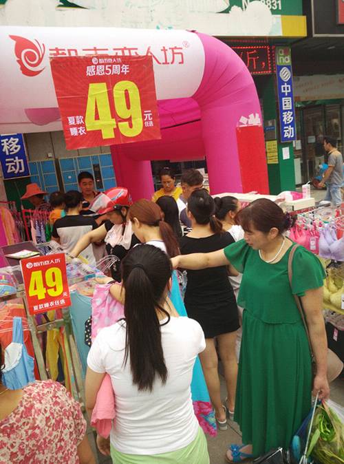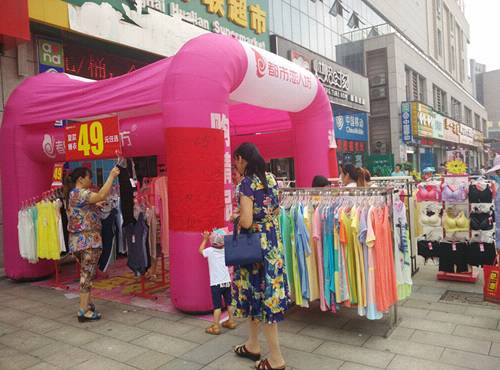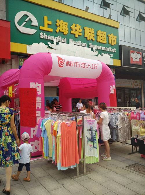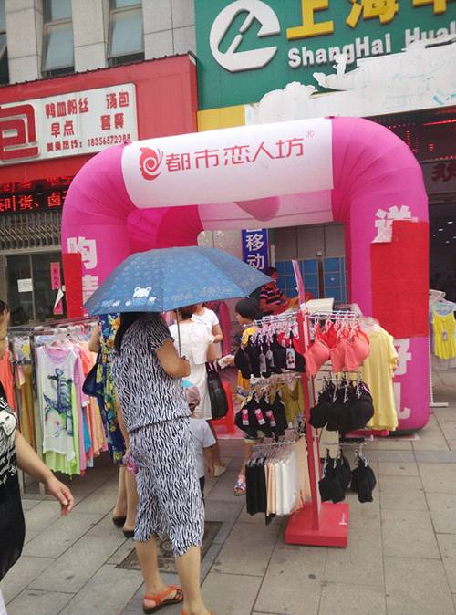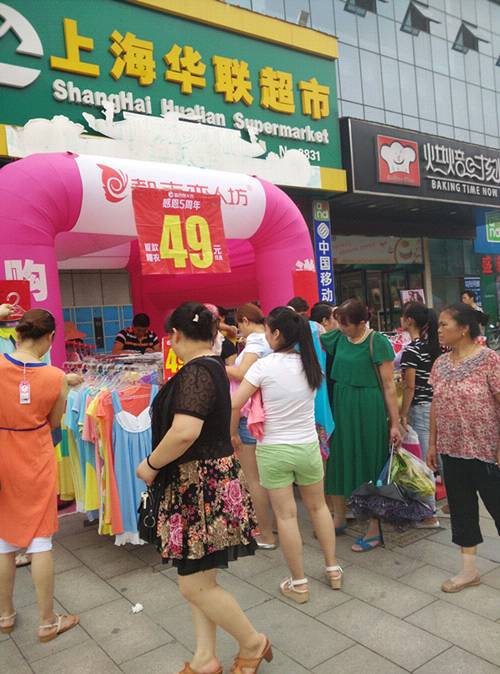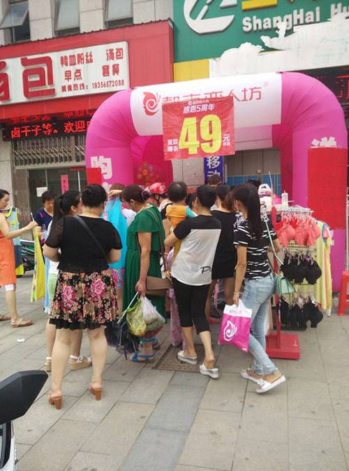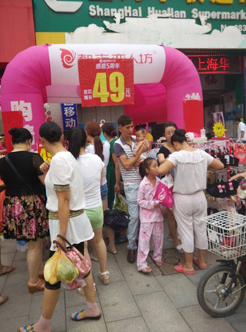 陈姐和钱哥是去年8月份开的店,到现在也刚好一周年啦,陈姐以前没做过销售行业,也没接触过内衣方面的东西,但因为朋友有开,感觉还不错,所以直接辞掉工作来创业,平时和陈姐聊天,知道她是一个特别用心的女人,她自已也说只要用心做,就没有做不好的事情,这不事实证明,陈姐做到了,从一开始的什么都不懂到现在店里业绩稳定上升,店里员工管理各方面都是井井有条的,刚好公司推出的5周年的特惠活动,睡衣全部49元,趁此良机就和陈姐约好16号做活动,陈姐也尽心尽力的整理货品,再补货,一切只为了活动当天的业绩,因为陈姐的店在超市里面,所以我们全部做的外场,下面我们来看看我们漂亮的布置吧。
