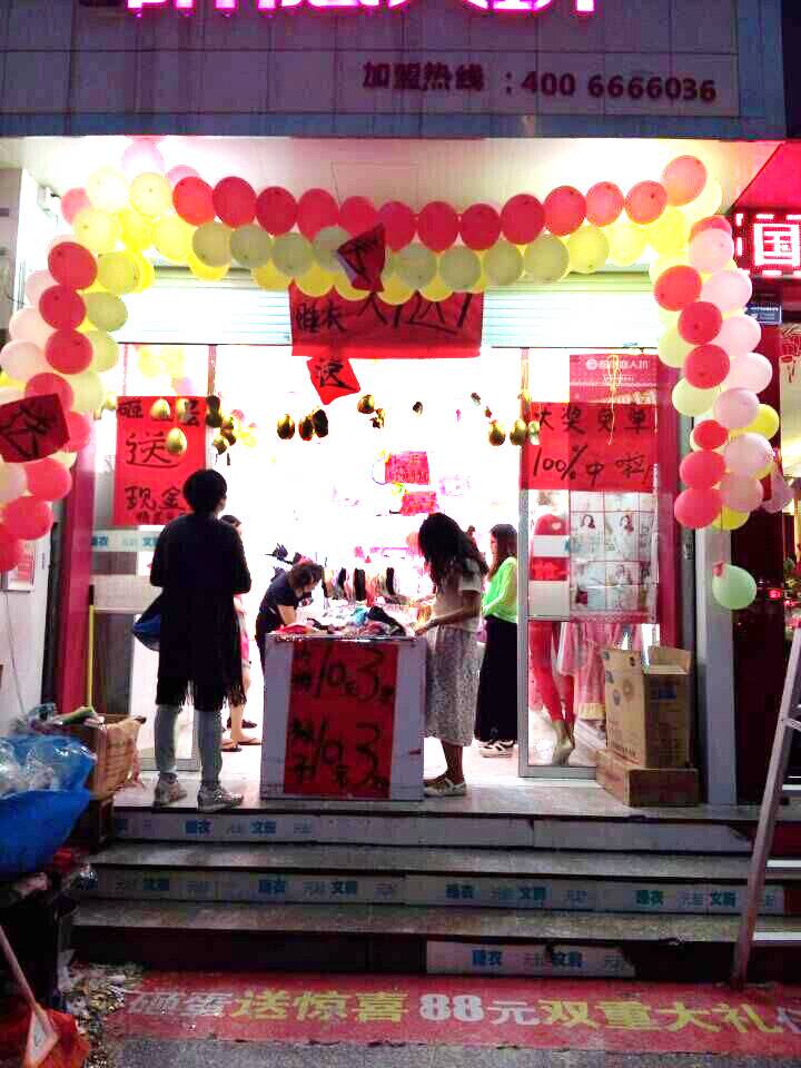 活动当天我和老板两个都怀着满满的信心把业绩做好来,为此早上我提前到了叶总的店。可惜天空不作美早上就下起了绵绵细雨,上午人流量很少,加上当天城管管的很严不让我们布置外场 不过还好在吴姐跟店员的帮忙下吹起了气球拱门 另外把金蛋放置在门口显眼的地方 漂亮的外场就呈现在过往的顾客面前 ,虽然我们当时有点担心今天业绩,但到了下午因为我们外场的精美布置,吸引了很多新老顾客,进店人员也是一波接一波,让我喊麦也更有激情,对当天能做好业绩更有信心。