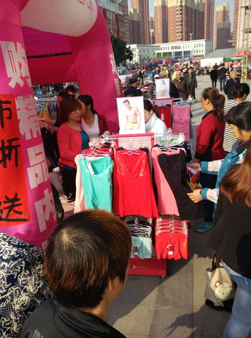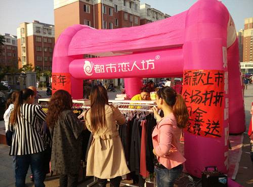 一大早我们就开始准备我们漂亮的外场了,看看我们现场的那些人,那些事:“充足的货品,绚丽的拱门,惹火的红纸,饱满的人员激情,” 所有的东西刚刚准备就绪,那些大姐,大妈就纷纷走上来了,再加上我们督导的激情喊麦,那人就更控制不住了。