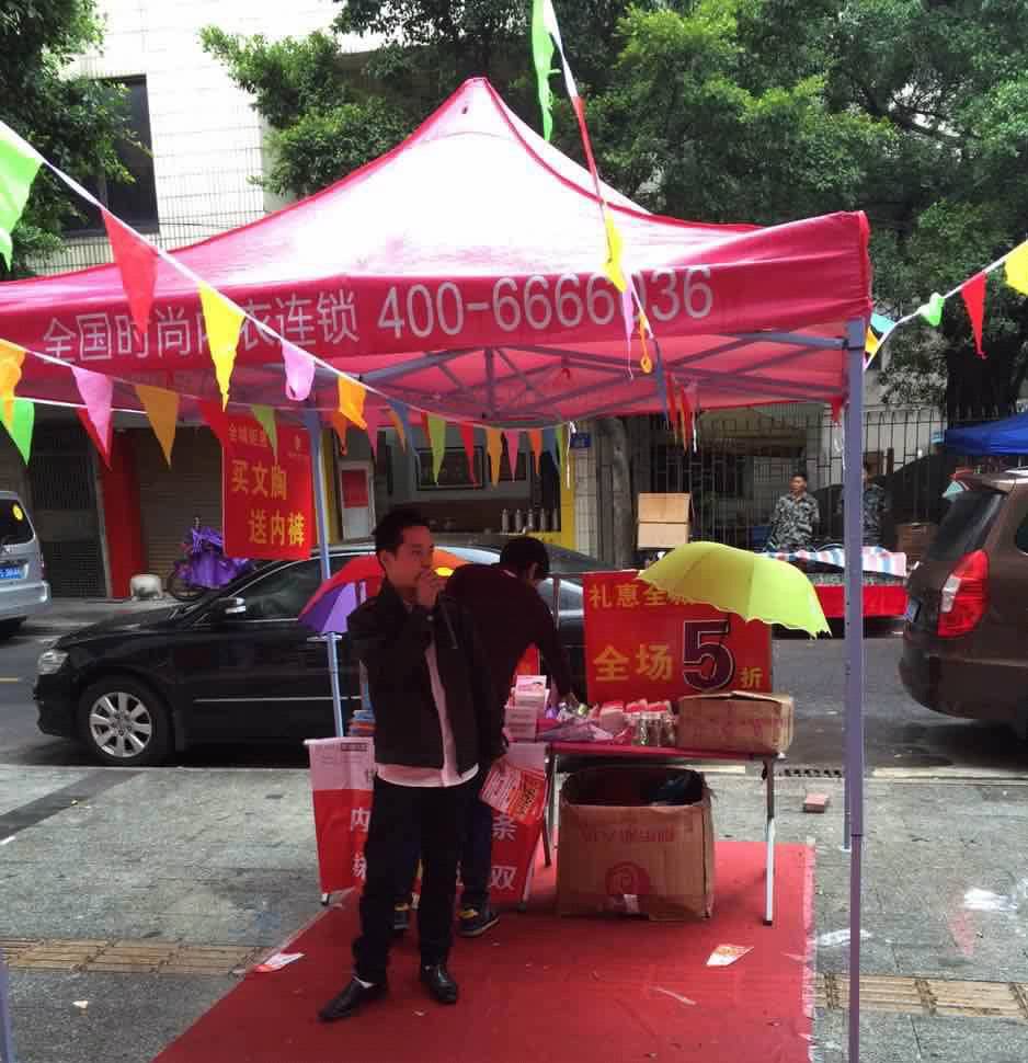 国庆前张总就早早的把秋冬款备好,之前就已商量好,国庆由于我们督导繁忙,是自己做的活动。所以国庆后第一个周末我们安排了活动,活动前一天晚上就已经把场布置好了,只等着活动的到来。可是天公不作美,当天居然下起了小雨,但是下雨也依然没能阻止我们做活动的决心,随着我们更热烈的喊麦声,人气也越来越旺,接下来请看我们的活动现场: