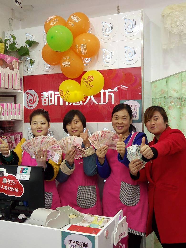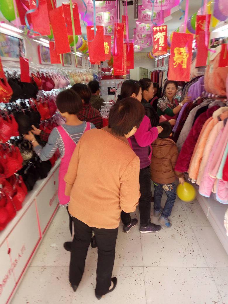 当天早上,我们把活动现场的拱门,地胶,礼品布置好,音乐一放起来后就有一大批顾客进店,现场就火爆了起来,店员们从11点到3点多一直忙个不停,在这里说美女们,你们辛苦了,看看我们的火爆现场!